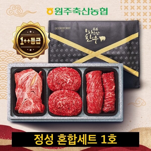 치악산한우 정성혼합세트 1호 / 1++등심300g, 1등급이상 불고기,국거리 각500g